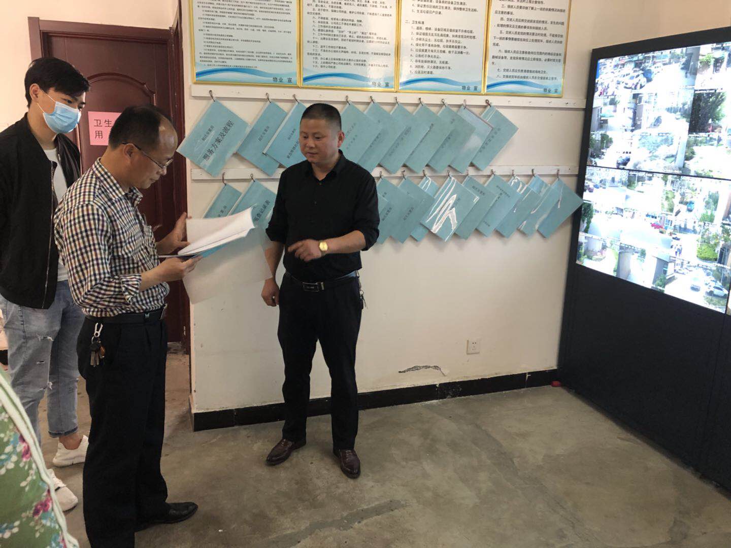 2020年4月30日上午,集團(tuán)公司王總帶隊(duì),在物業(yè)公司相關(guān)人員的陪同下,先后來(lái)到圣莊安置房、趙莊安置房、東湖花園公租房、白鷺棲園公租房、岱河花園公租房和2012公租房,實(shí)地查看各小區(qū)疫情防控工作,檢查組深入疫情防控執(zhí)勤點(diǎn)、消防、視頻監(jiān)控室等處認(rèn)真查看每個(gè)區(qū)域的疫情防控情況、消防安全設(shè)施、用電安全、監(jiān)控等設(shè)備運(yùn)行情況,檢查過(guò)程中,通皓物業(yè)公司下轄的物業(yè)管理項(xiàng)目防控秩序井然,物業(yè)領(lǐng)導(dǎo)及管理人員均能按照排班要求按時(shí)到現(xiàn)場(chǎng)巡視檢查,各出入口、執(zhí)勤點(diǎn)防控措施到位,值守人員到崗情況正常,視頻監(jiān)控室運(yùn)行正常,并有專人值守。