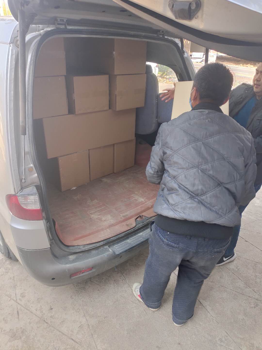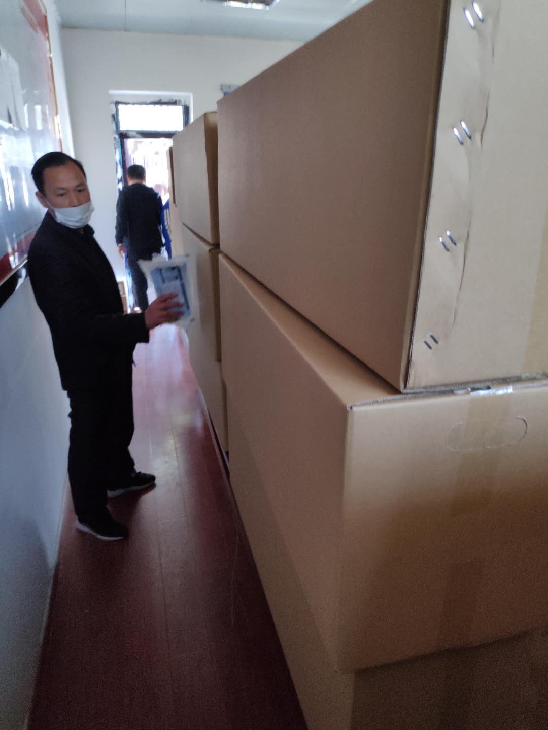 2020年4月12日上午,東昱集團下屬子公司森海商貿(mào)將采購的一次性醫(yī)用口罩16萬只送達杜集區(qū)教育局指定地點交付使用。