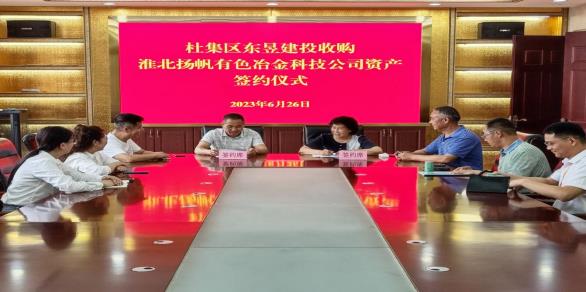 29 06月2023 了解詳情 集團(tuán)公司資產(chǎn)收購(gòu)項(xiàng)目舉行簽約儀式 6月26日上午,在安徽淮北杜集經(jīng)濟(jì)開(kāi)發(fā)區(qū)管理委員會(huì)會(huì)議室,在開(kāi)發(fā)區(qū)管委會(huì)負(fù)責(zé)人員現(xiàn)場(chǎng)見(jiàn)證下,集團(tuán)公司與淮北揚(yáng)帆有色冶金科技公司就資產(chǎn)收購(gòu)項(xiàng)目舉行簽約儀式,集團(tuán)公司副總經(jīng)理博超出席并簽字。